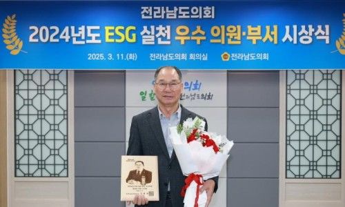 ‘ESG 실천 우수 의원’은 전라남도의회가 지속 가능한 발전을 위한 ESG 시스템 기반을 마련하고 ESG(환경, 사회, 거버넌스) 실천 및 인식 확산에 기여한 모범적인 의원에게 수여하는 권위 있는 상이다.