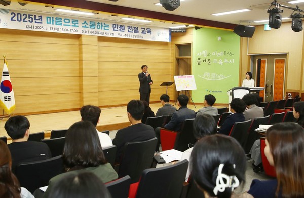 조상래 군수는 “민원 친절 교육을 통해 군민들과의 소통이 원활히 이루어지고 민원 응대에 있어 진심 어린 태도로 다가갈 수 있는 계기가 되기를 바란다”며 “민원 담당 공무원들이 군민 한 사람 한 사람을 내 가족처럼 여기며 신뢰를 쌓아가길 기대한다”고 전했다.