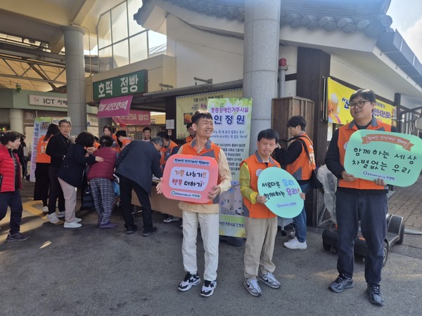 곡성군은 중증장애인 거주시설인 인정원에서 장애 인식 개선을 위한 캠페인을 지난 3일 기차마을전통시장에서 개최했다.