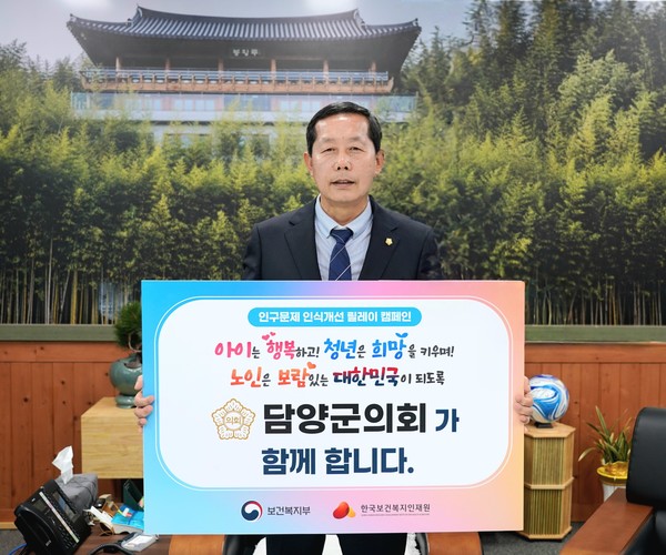 장명영 담양군의회 의장이 인구문제에 대한 사회적인 관심을 환기하기 위해 ‘인구문제 인식개선 릴레이 캠페인’에 참여했다고 밝혔다.