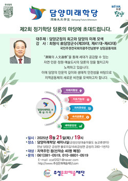 나항도 이사장은 “담양의 인문적 깊이와 생태적 안전성을 바탕으로 지역 공동체의 지속가능한 발전과 회복력을 높이는 담론의 장이 되길 바란다”며, “이번 정기학당이 위기 속에서도 새로운 기회를 만들어가는 지혜를 공유하는 계기가 될 것”이라고 밝혔다.
