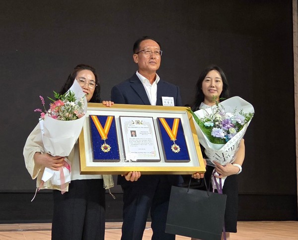 담양군요양보호사협회 이동오 회장이 최근 글로리아웨딩홀에서 열린 ‘2025 코리아문화예술대상 자랑스런 한국인 시상식’에서 사회봉사부문 ‘사회복지공헌 대상’을 수상했다.