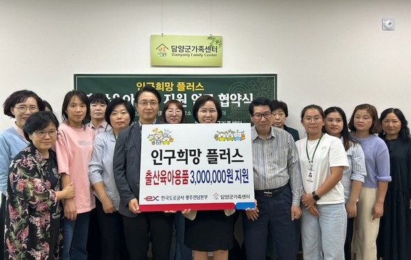 한국도로공사 광주전남본부는 담양군 가족센터와 협력해 지역 내 저출산 극복과 건강한 양육 환경 조성을 위한 ‘인구희망 플러스’ 출산·육아용품 지원사업을 추진한다고 밝혔다.