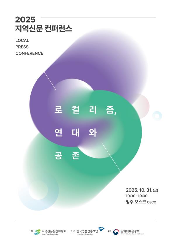 지역신문발전위원회(위원장 김찬영)는 문화체육관광부(장관 최휘영, 이하 문체부), 한국언론진흥재단(이사장 김효재)과 함께 10월 31일 청주 오스코(OSCO)에서 ‘2025 지역신문 콘퍼런스’를 개최한다.