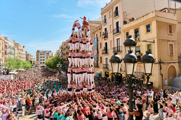 “피냐(Pinya)!” 누군가 외쳤다. 가장 아래층을 뜻하는 이 단어는 카탈루냐어로 ‘함께 버티기’를 의미한다. 20~30명이 서로의 어깨를 붙잡고 버티는 동안 2층, 3층, 4층이 올라갔다. 마지막으로 헬멧을 쓴 여섯 살쯤 돼 보이는 여자아이가 꼭대기로 올라가기 시작했다. 숨소리조차 들릴 것 같은 정적 속에서 아이가 두 손을 하늘로 쭉 뻗는 순간 환호와 박수가 뒤섞였다.