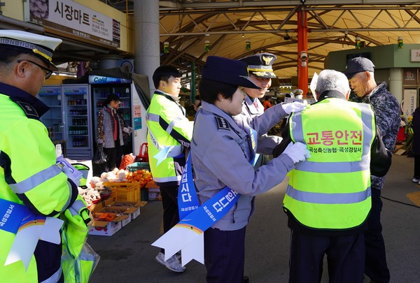 캠페인에서는 보행자(전동의자차 포함) 교통사고 및 경운기 등 농기계 교통사고 예방을 위해 전통시장을 찾은 군민들에게 형광조끼, 홍보물 배부 등 교통사고 예방 홍보활동을 실시했다.