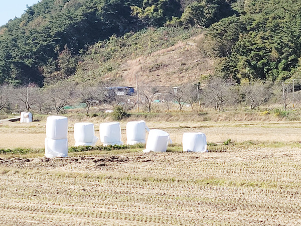 가을 이전 업자가 농가에서 한 마지기(660㎡·200평) 단위로 값을 치르고 볏짚을 산 뒤 곤포 사일리지로 만들어 축산농가에 파는 형식이나 올해는 기후재난에 여의치 않은 실정이다.
