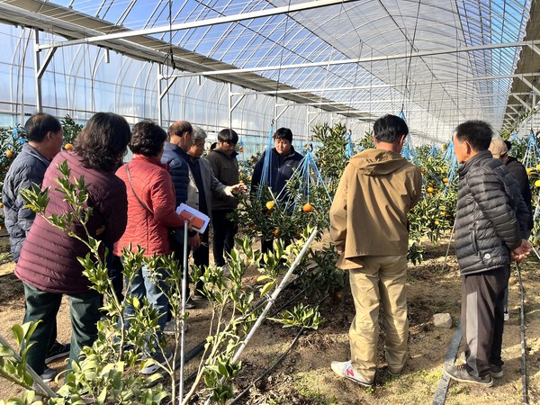 옥과·오산·겸면 관내 만감류 재배농가를 대상으로 진행된 이번 교육은 현장 중심의 실습 교육을 통해 작목별 생육 관리, 병해충 예방, 양분관리 및 수확 후 상품성 향상 기술 등을 중점적으로 다뤘다.