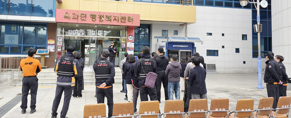 옥과면행정복지센터는 지난 20일 옥과119안전센터와 함께 화재대응 역량 강화를 위한 합동 소방훈련을 추진했다.