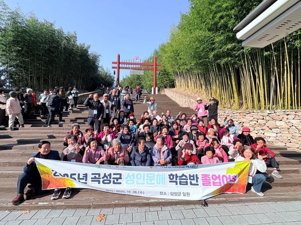 곡성군미래교육재단은 성인문해교육 초등 3년 과정의 졸업을 기념하기 위해 5개 학습반 학습자들이 담양군 일원으로 졸업여행을 다녀왔다고 밝혔다.
