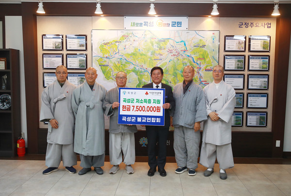 곡성군은 곡성불교연합회(도림사·서산사·천태암·태안사·성륜사·수도암·관음사)와 여수 향일암이 협력해 곡성군 취약계층을 위한 성금 750만 원을 기부했다고 전했다.