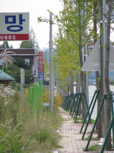 또 인도 에는 각종 교통 이정표는 물론 한전에서 설치한 시설물로 인해 주민들의 통행 공간은 정작 막혀있는 상황으로 주민들이 차도로 다닐 경우에는 무섭게 달리는 차량들로 인해 주민들의 안전이 크게 위협을 받고 있다.