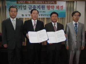 농협담양군지부(지부장 이영배)는 지난 7일 담양군과 에코-하이테크농공단지 입주기업에 대한 금융지원 협약을 체결했다. (사진)