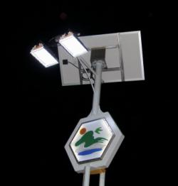 “이 가로등의 특징은 우선 태양광을 이용해 낮 동안 배터리를 충전, 밤에 쓸 수 있으며 밝기 조절이 가능하다는 겁니다. 또 태양의 주기에 따라 일출 일몰 시간이 저장돼 있어 일일이 끄고 켤 필요가 없고 LED전구를 이용해 전기 소모도 매우 적죠”