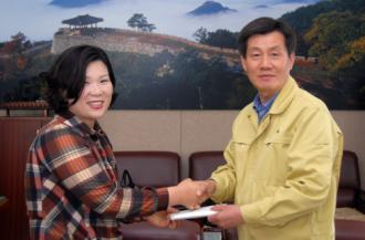 강순임 회장을 비롯한 회원들은 15일 담양군청을 찾아 주영찬 군수 권한대행에게 장학기금으로 100만원을 전달했다.