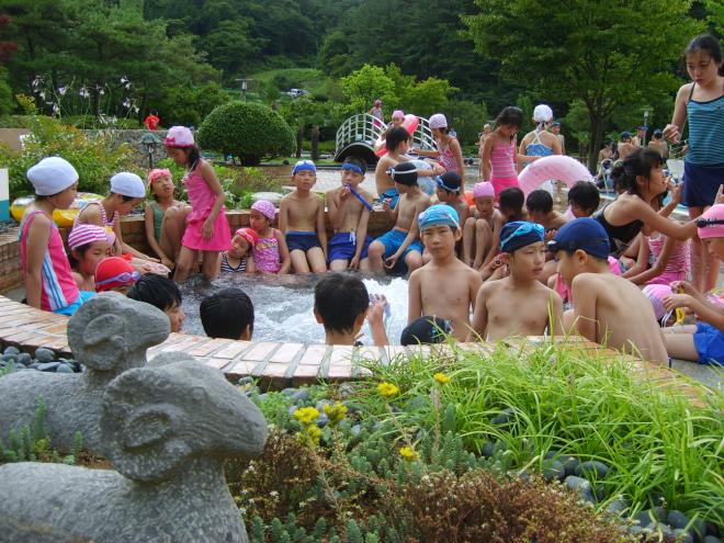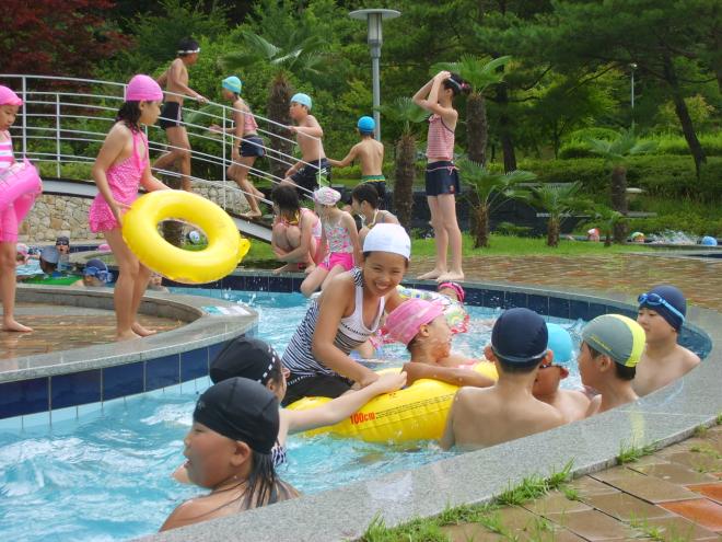 특히 야외에서 수영을 즐긴 어린이들의 건강을 고려하여 수영장 내에 야외온천탕을 별도로 마련하여 저체온 현상을 사전에 예방토록 하는 등 세심한 인프라가 특징일 뿐만 아니라 인근 수목원에서 수종의 특성과 장점 등의 살아있는 현장 학습 프로그램을 체험하며 건전한 여가를 즐길 수 있다.