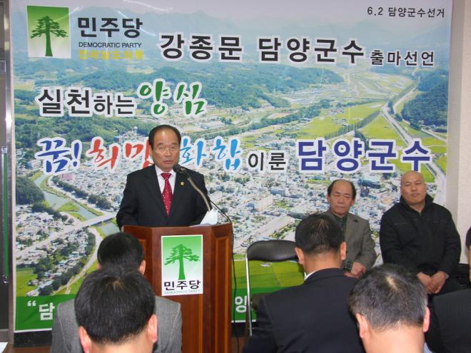 오랜 기간 담양군수에 뜻을 세우고 외연을 넓혀온 강종문 도의원도 기자회견을 통해 공식적인 행보에 나섰다.